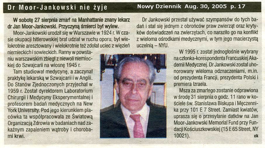 Moor-Jankowski, Jan | physician | New York, NY | 1924 - 2005 | Nowy Dziennik | professor of med. at NY University |