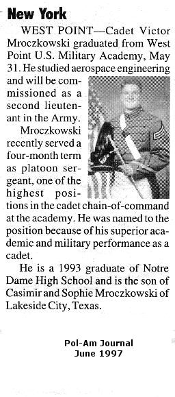 Mroczkowski, Victor | military | Lakeside City, TX | n/a | Pol-Am Journal | West Point graduate 1997 |
