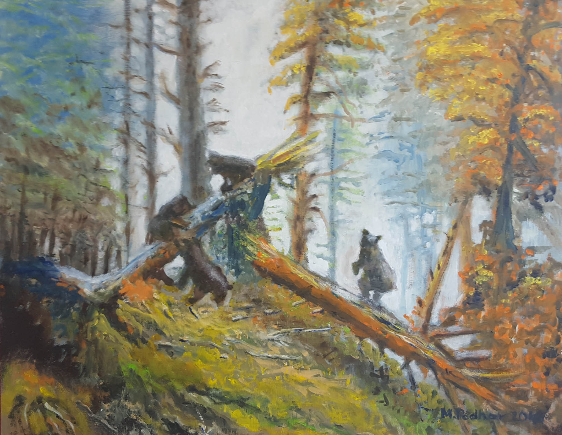 5. Bears in the Forest - oil on linen, 20x24"
