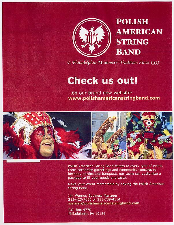 Since its founding in 1933 the Polish American String Band has been thrilling audiences of all ages in the fine tradition of Philadelphia Mummery with its great music, beautiful costumes and outstanding, award winning presentations.