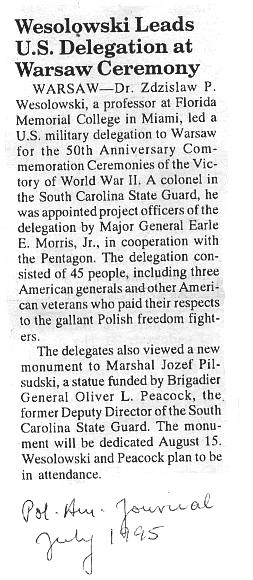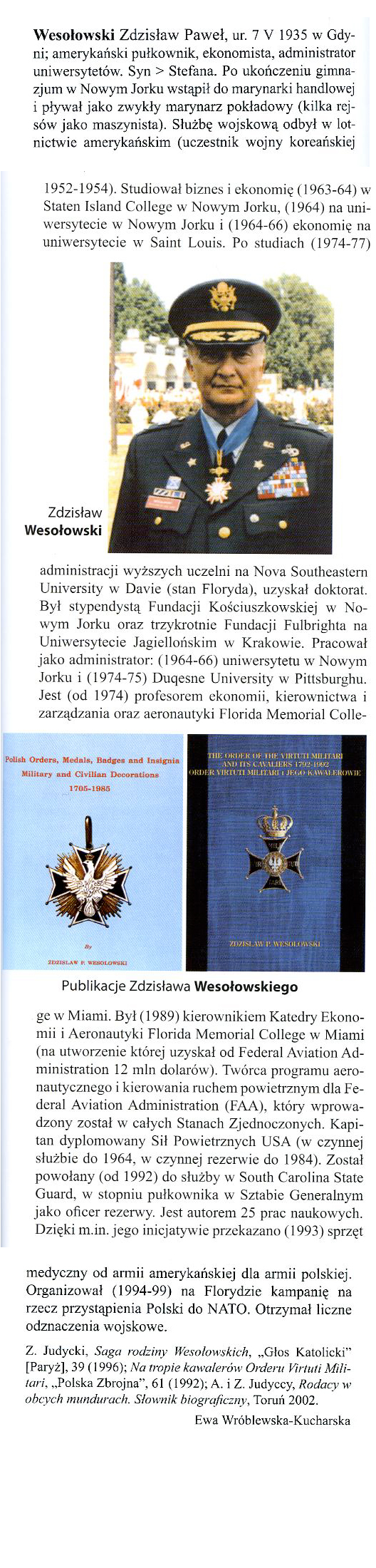 Sources: Z. Judycki Saga Rodziny Wesolowskich [Saga of the Wesolowski Family] in "Glos Katolicki", Paris, 39, 1996; Na tropie kawalerow Orderu Virtuti Militari, [Tracking Recipients of the Virtuti Militari Medal] Polska Zbrojna, [Armed Poland], 61, 1992; A. and Z. Judycki, Rodacy w obcych mundurach, Slownik biograficzny [Poles in Foreign Uniforms, A Biographical Dictionary], Torun 2002.