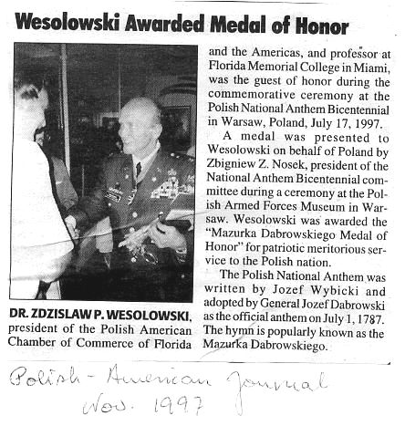 From: "Who's Who in Polish America" 1st Edition 1996-1997, Boleslaw Wierzbianski editor; Bicentennial Publishing Corporation, New York, NY, 1996