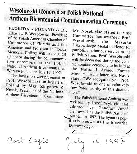 Translated from: "Encyklopedia Polskiej Emigracji i Polonii," Edited by: Kazimierz Dopierala, Vol. V, Oficyna Wydawnicza Kucharski, Torun, Poland, 2003;